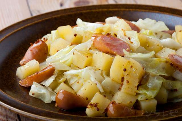 キャベツとソーセージの粒マスタード煮 ハナウタゴハン