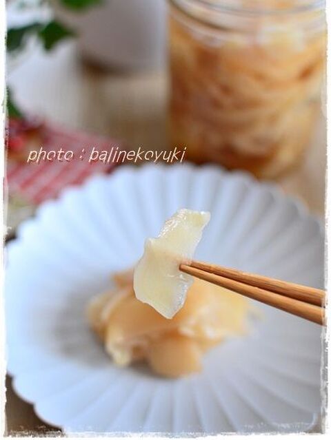 ガリや新生姜の残った汁で新玉ねぎ甘酢漬け レシピ 作り方 By まゆみん73 クックパッド