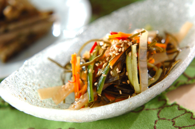 楽天が運営する楽天レシピ ユーザーさんが投稿した いかとこんぶでさっぱり酢の物 のレシピページです おうちにある乾物で 酢の物 するめいか 干物 こんぶ 春雨 りんご酢 水 砂糖 塩 レモン レシピ 酢の物 料理 レシピ