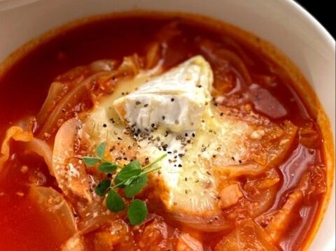 トマトジュースで簡単 たっぷりキャベツのトマトクリームスープ オーロラキッチン
