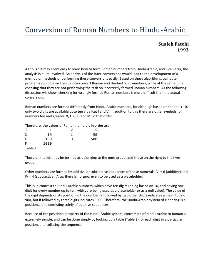 Conversion Of Roman Numbers To Hindu Arabic