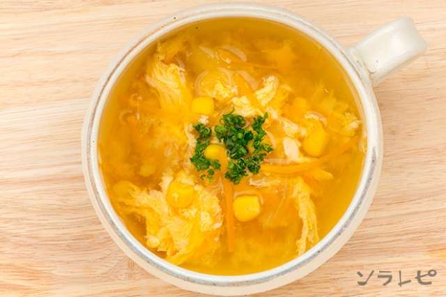 優しい味付けコーンと卵のコンソメスープのレシピ ソラレピ